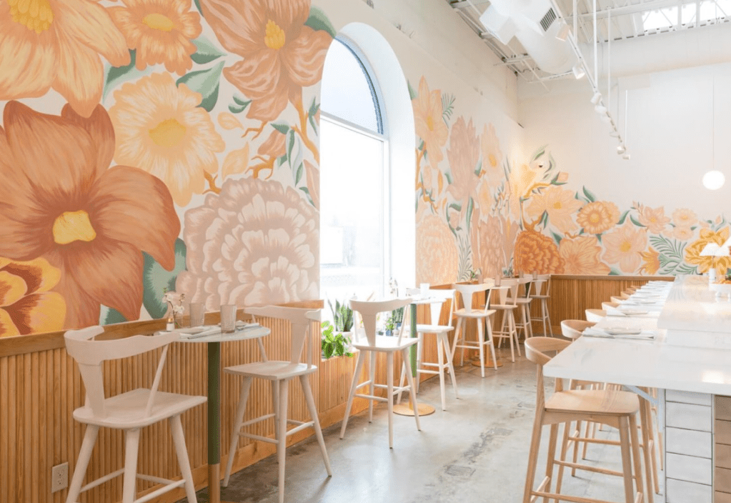 House of Marigold knows their brand and is killing it from the second you walk in the door. From the mint green and floral murals down to the pink jupiter glasses and gold accents, they have photo-worthy decor built into every aspect of their interior. The outdoor bistro lights and minimalist exterior aren’t too bad to look at either. This place is just plain cute.